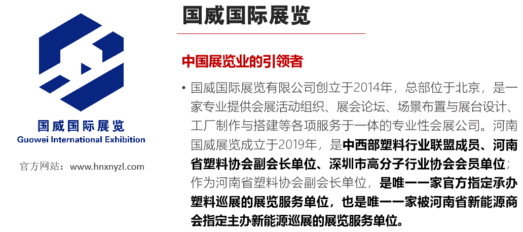 展会由河南国威展览服务有限公司和河南省塑料协会联合主办,国内多家省级行业协会共同协办,同时组织展团到郑州参展,组织相关的会员企业到展会现场进行采购,众多知名企业及当地塑料企业也将同时亮相。