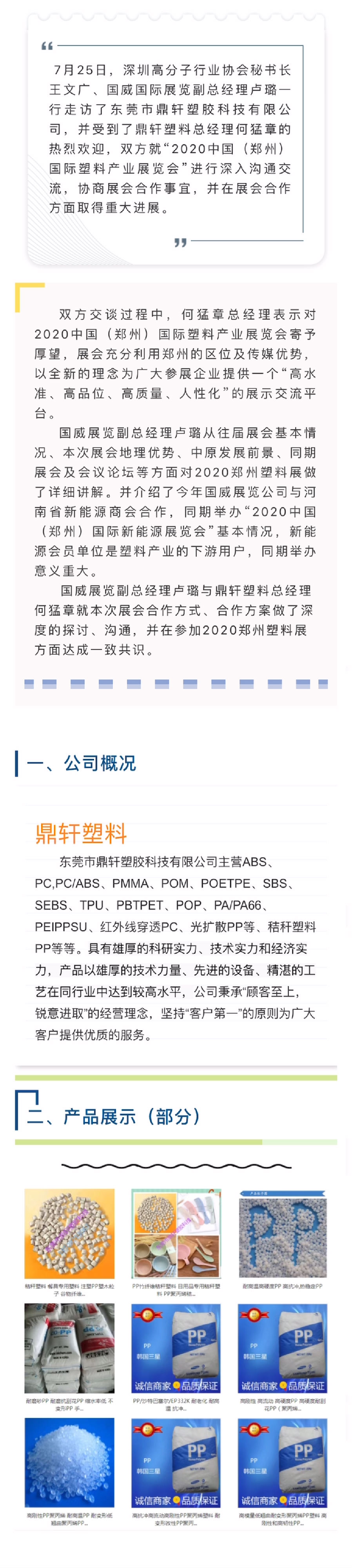 深圳市高分子行业协会、国威展览一行走访鼎轩塑料科技
