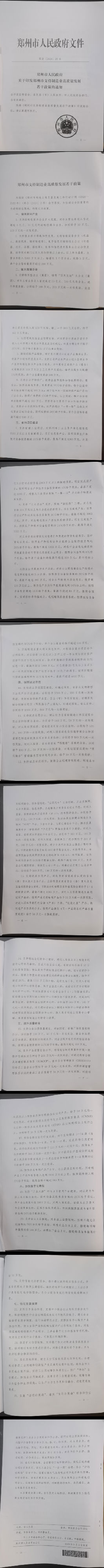 郑州市人民政府关于印发郑州市支持制造业高质量发展若干政策的通知