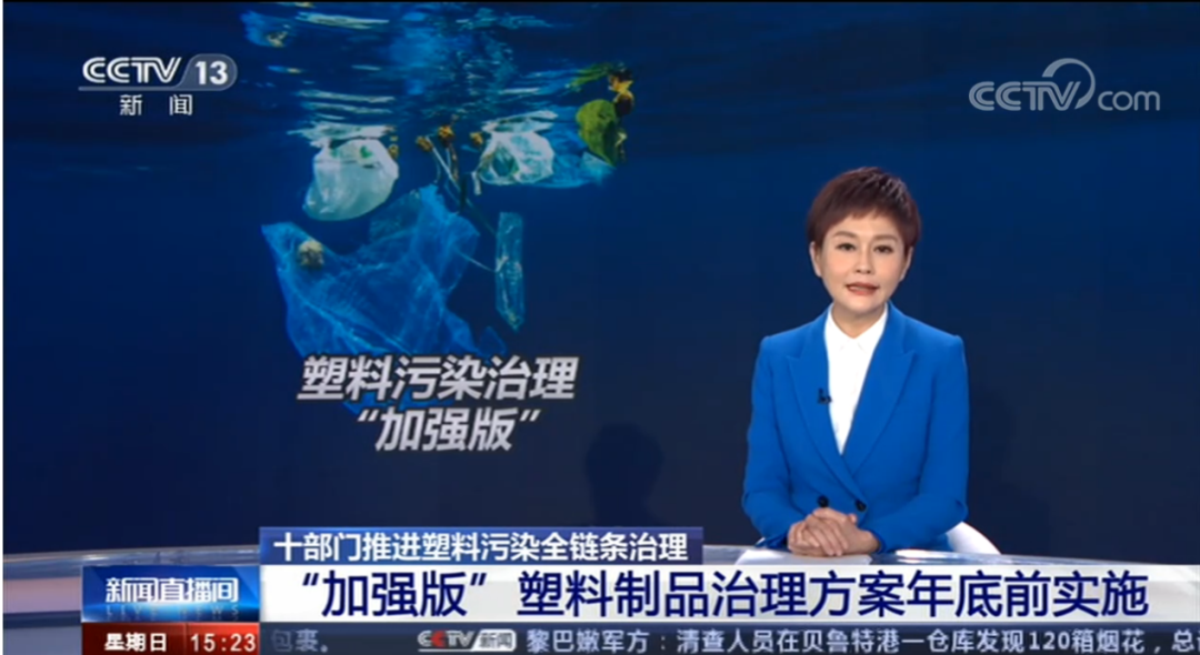 2020年9月20日,央视新闻频道播出了“十部门推进塑料污染全链条治理”的节目。